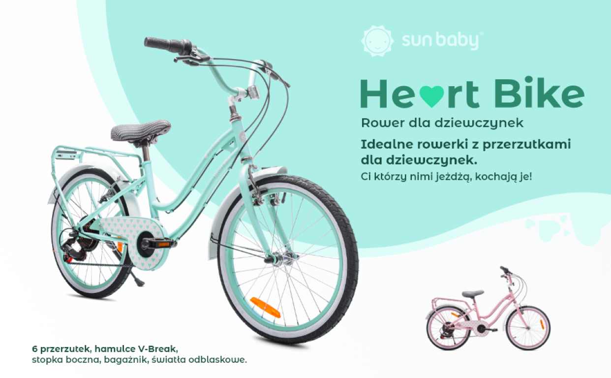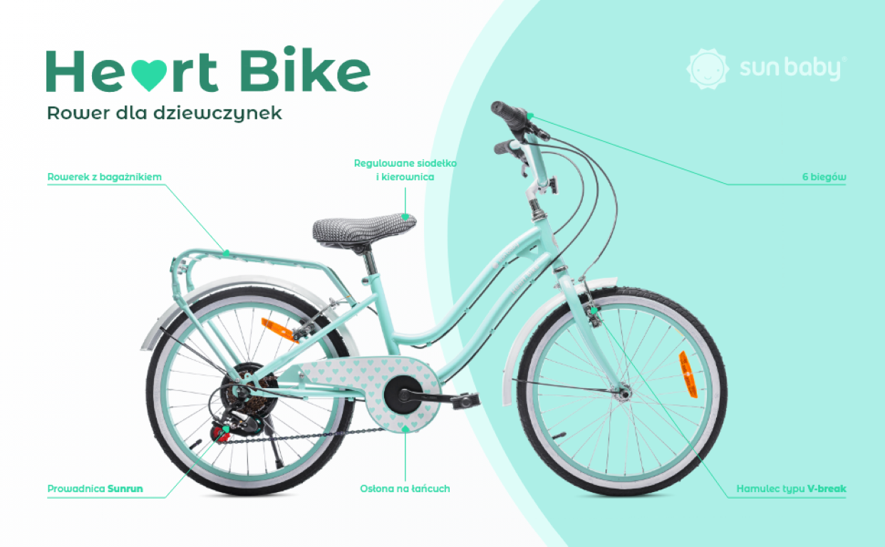 Rowerek dla dziewczynki 20 cali Heart bike - miętowy