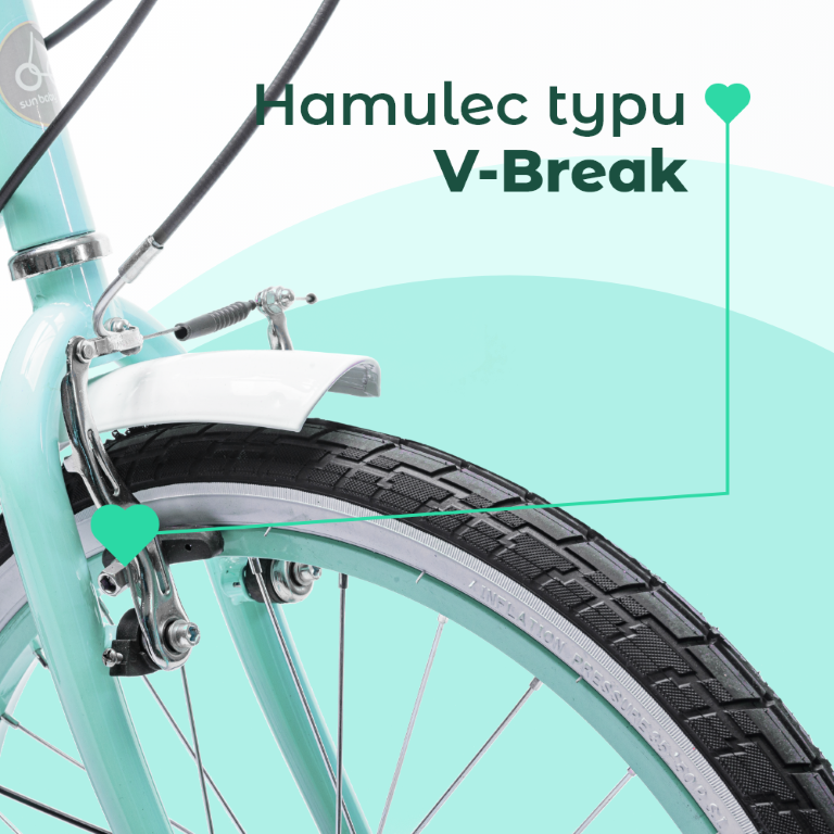 Długie ramię hamulca V-brake sprawia, że lekkie naciśnięcie klamki hamulca daje dużą siłę hamowania i niezawodne działanie nawet na mokrej obęczy. Rowerek Heart Bike jest wyposażony w hamulec V-brake przedniego i tylnego koła.