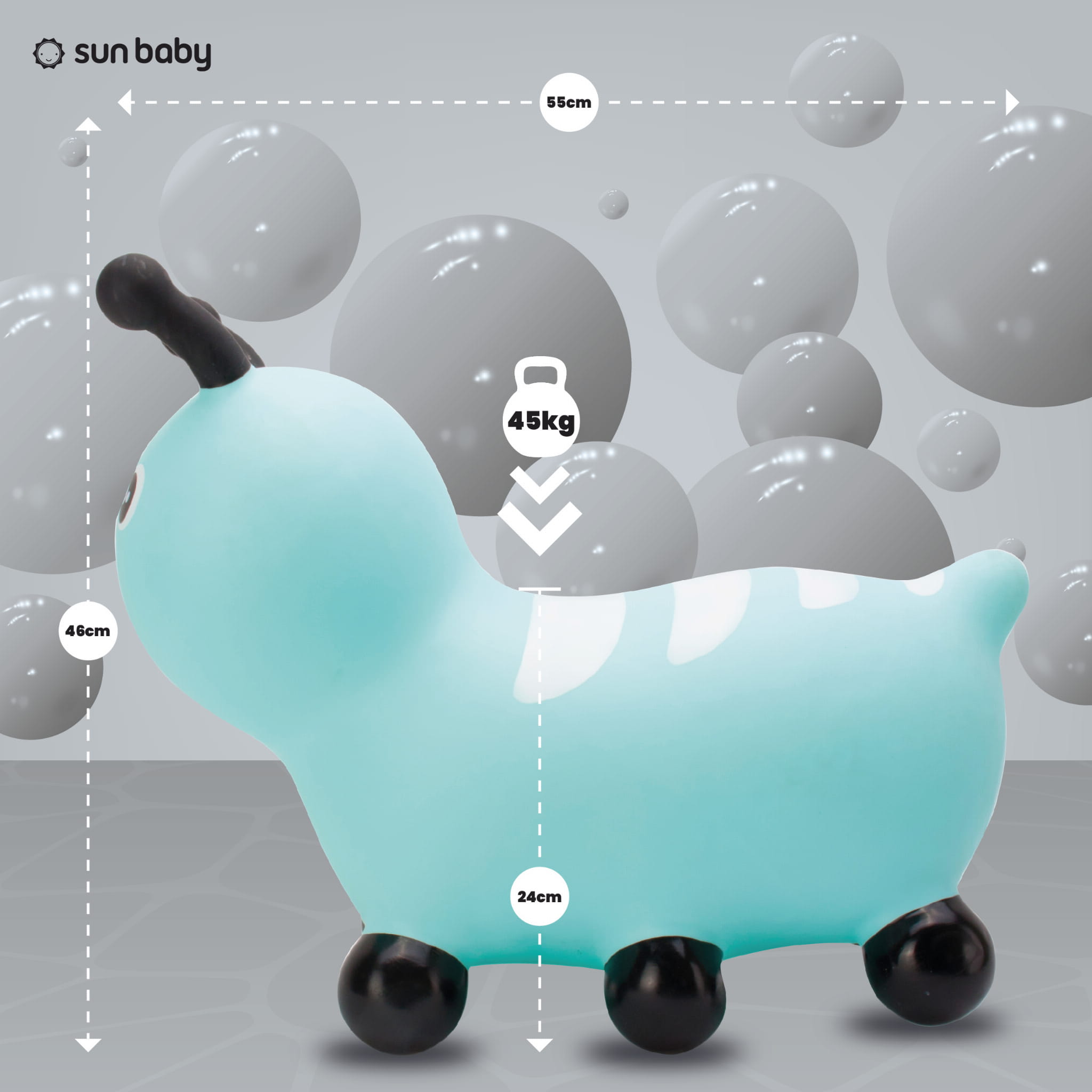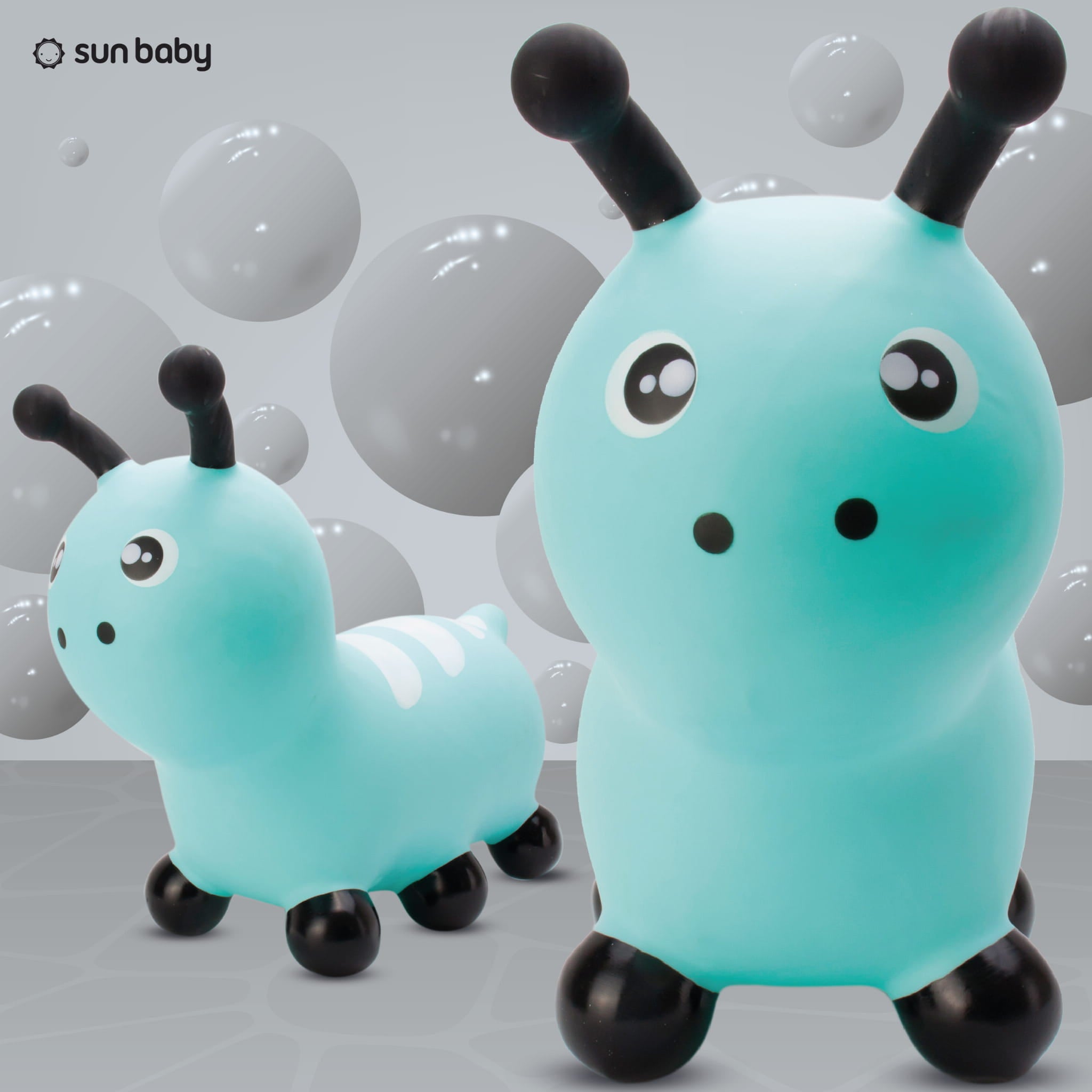 Sun Baby Skoczek dla dzieci Gąsieniczka niebieski z pompką – zabawka do skakania