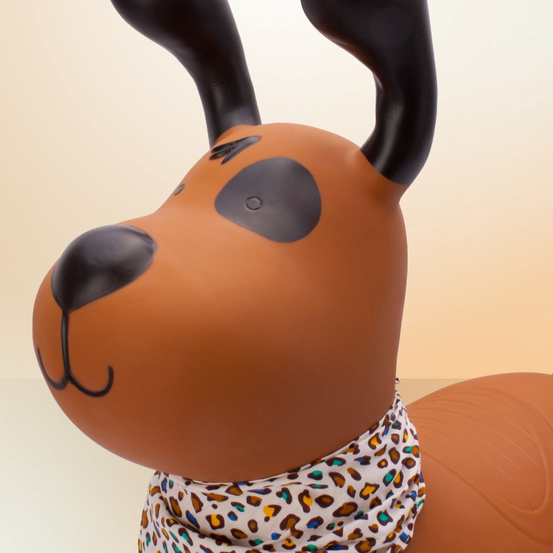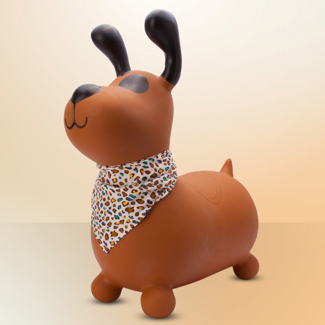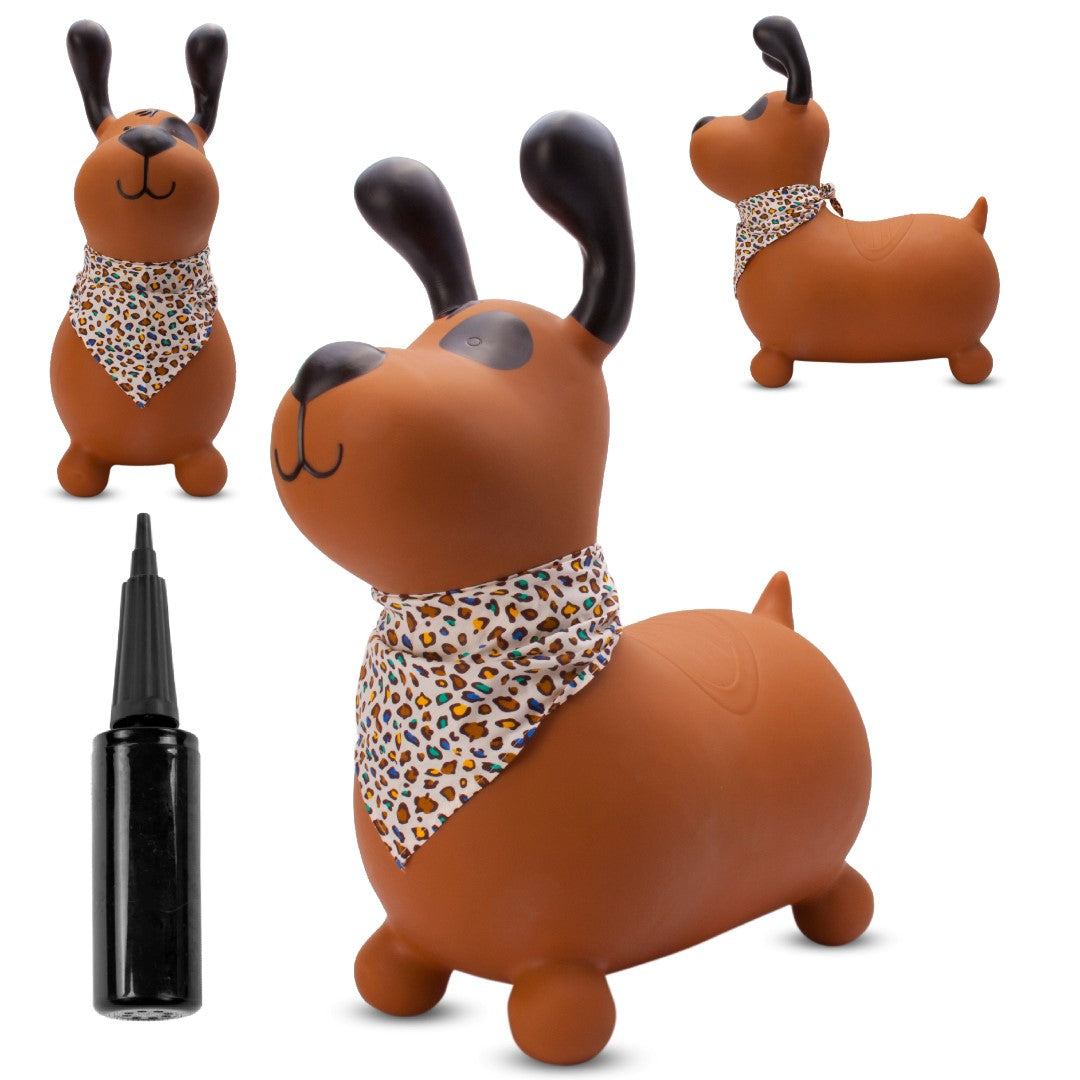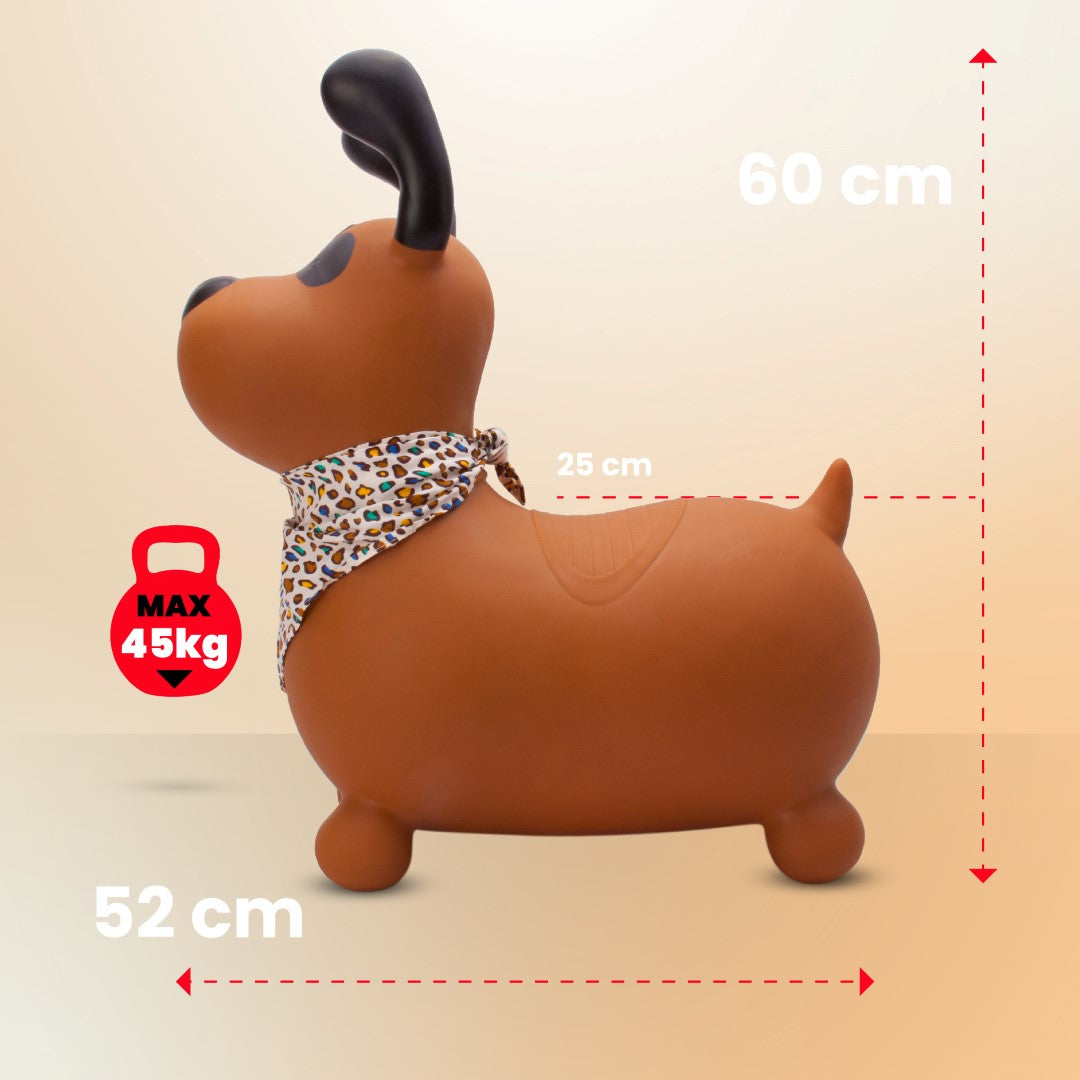 Sun Baby Skoczek dla dzieci Reksio brązowy z bandaną i pompką – zabawka do skakania