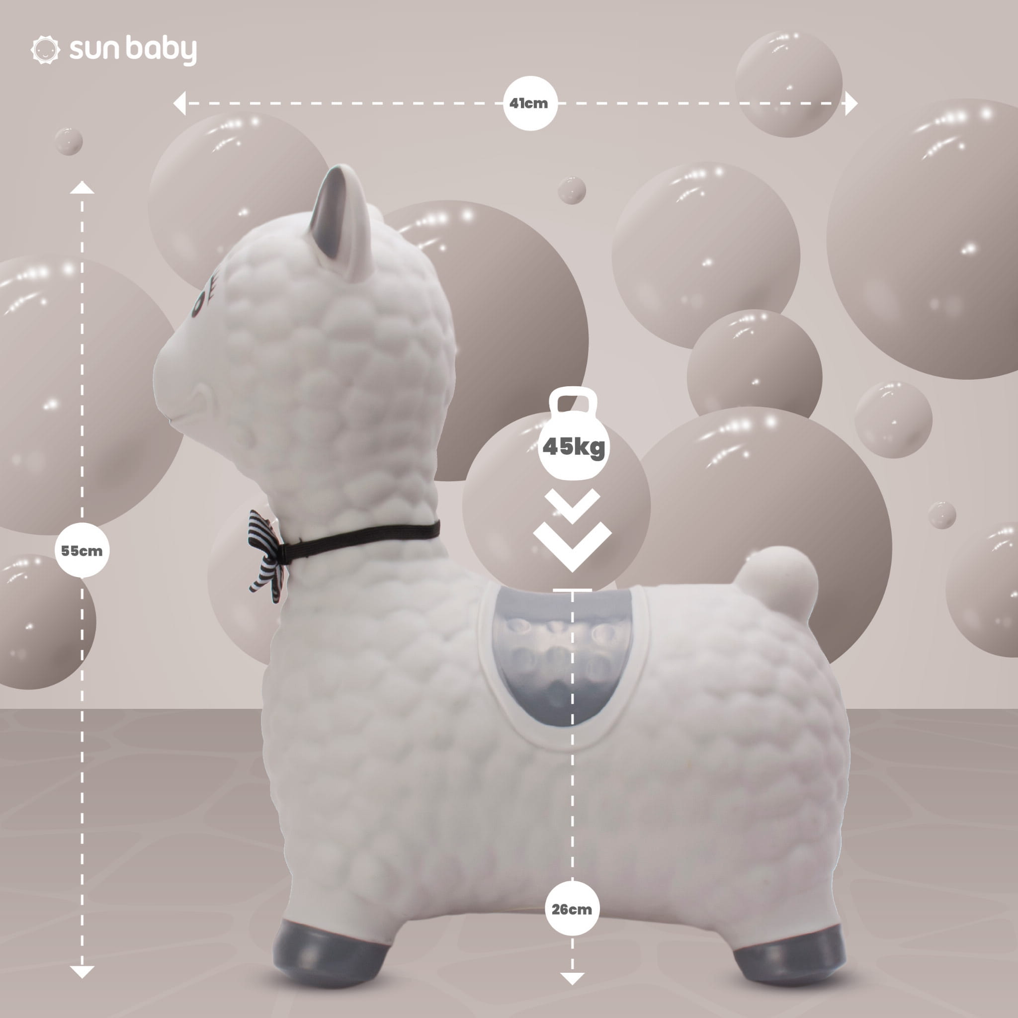 ✔️ wymiary: długość: 41 cm, szerokość maksymalna: 25 cm, wysokość (do uszu/rogów): 49 cm, wysokość do siedziska: 26 cm, szerokość siedziska: 23 cm, wysokość: 55 cm (wymiary skoczka mogą się różnić w zależności od stopnia napompowania)