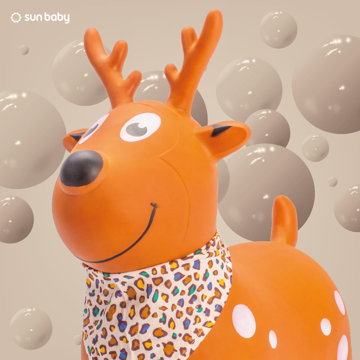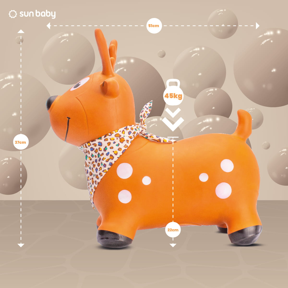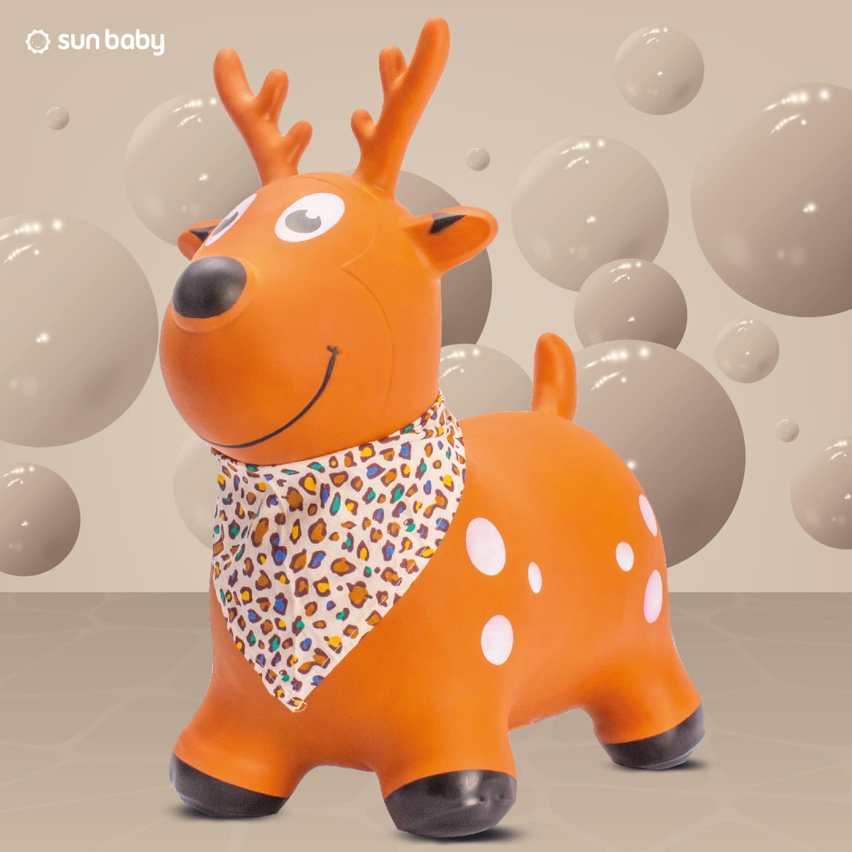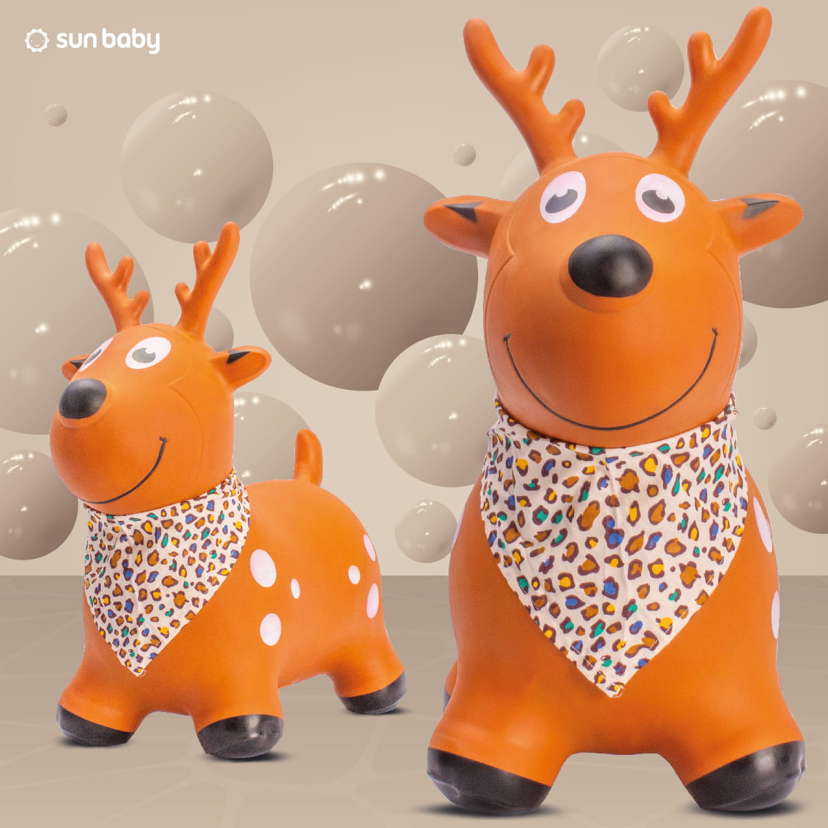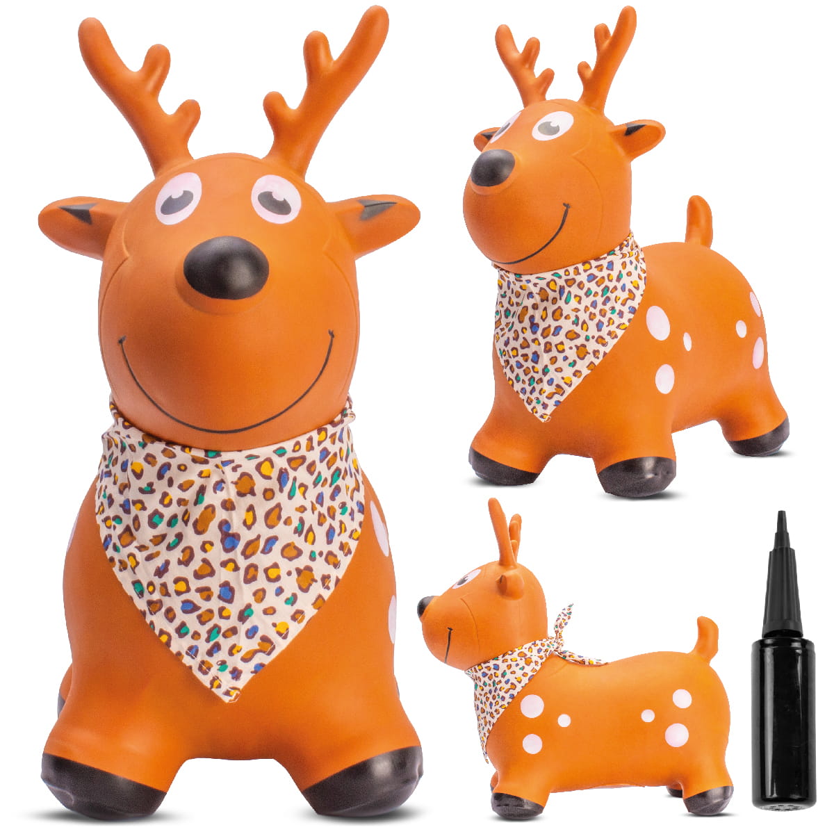 Skoczek dla dzieci Jelonek brązowy z bandaną i pompką – zabawka do skakania