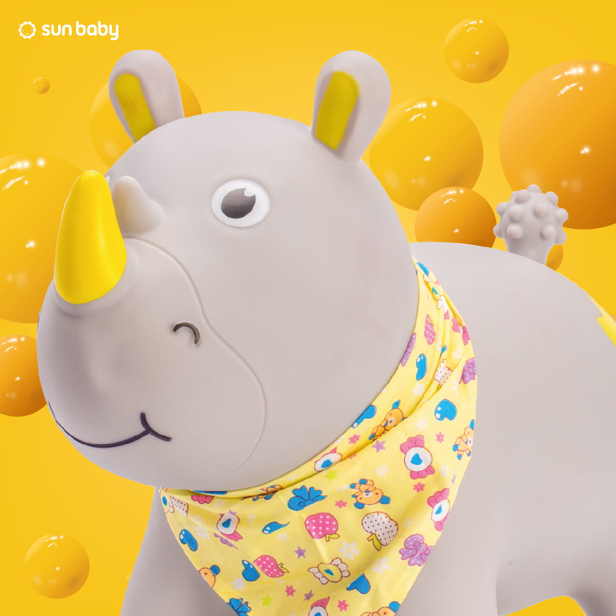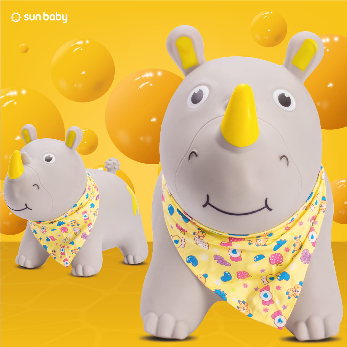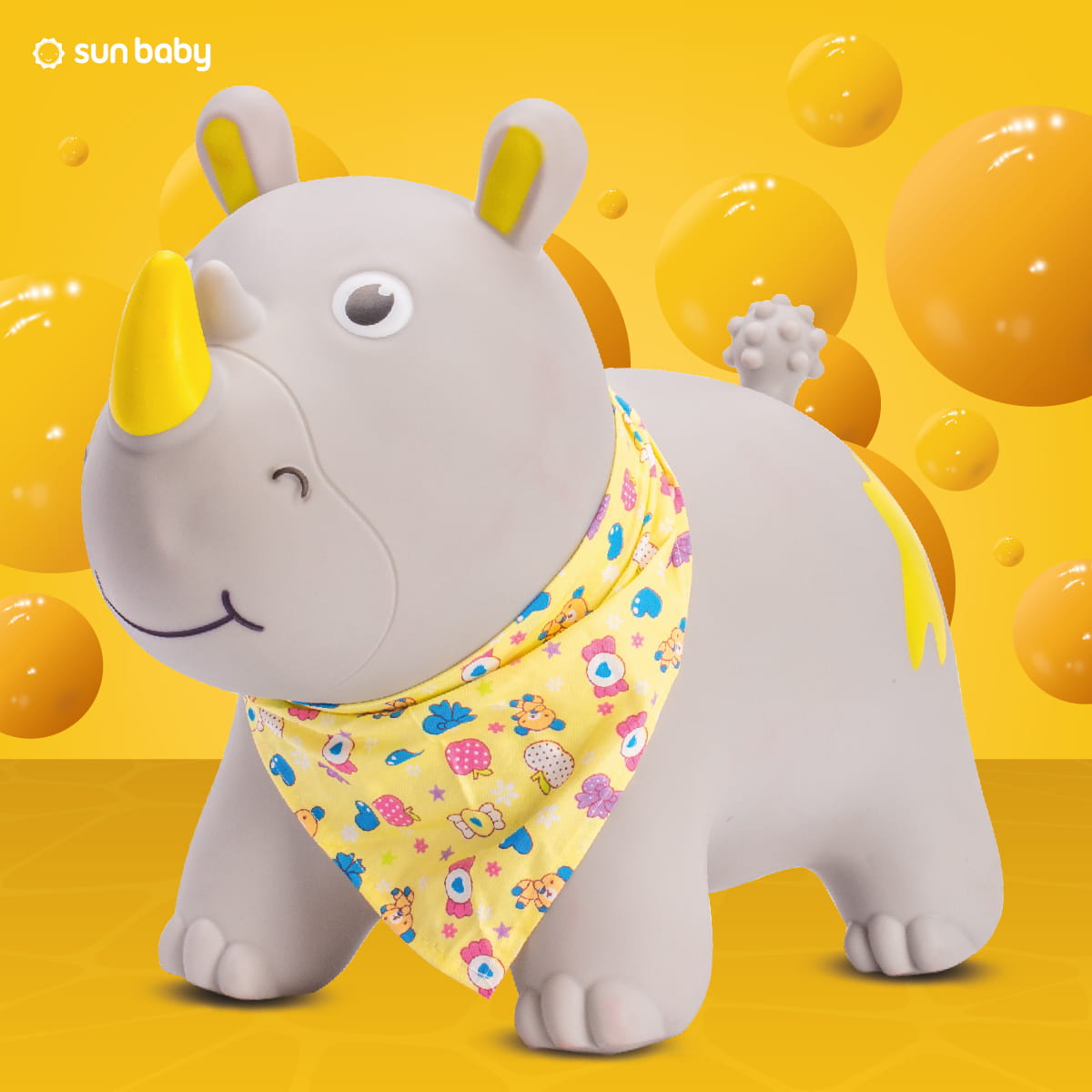 Sun Baby Skoczek dla dzieci Nosorożec szary z bandaną i pompką – zabawka do skakania