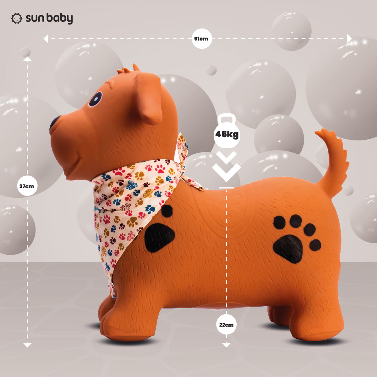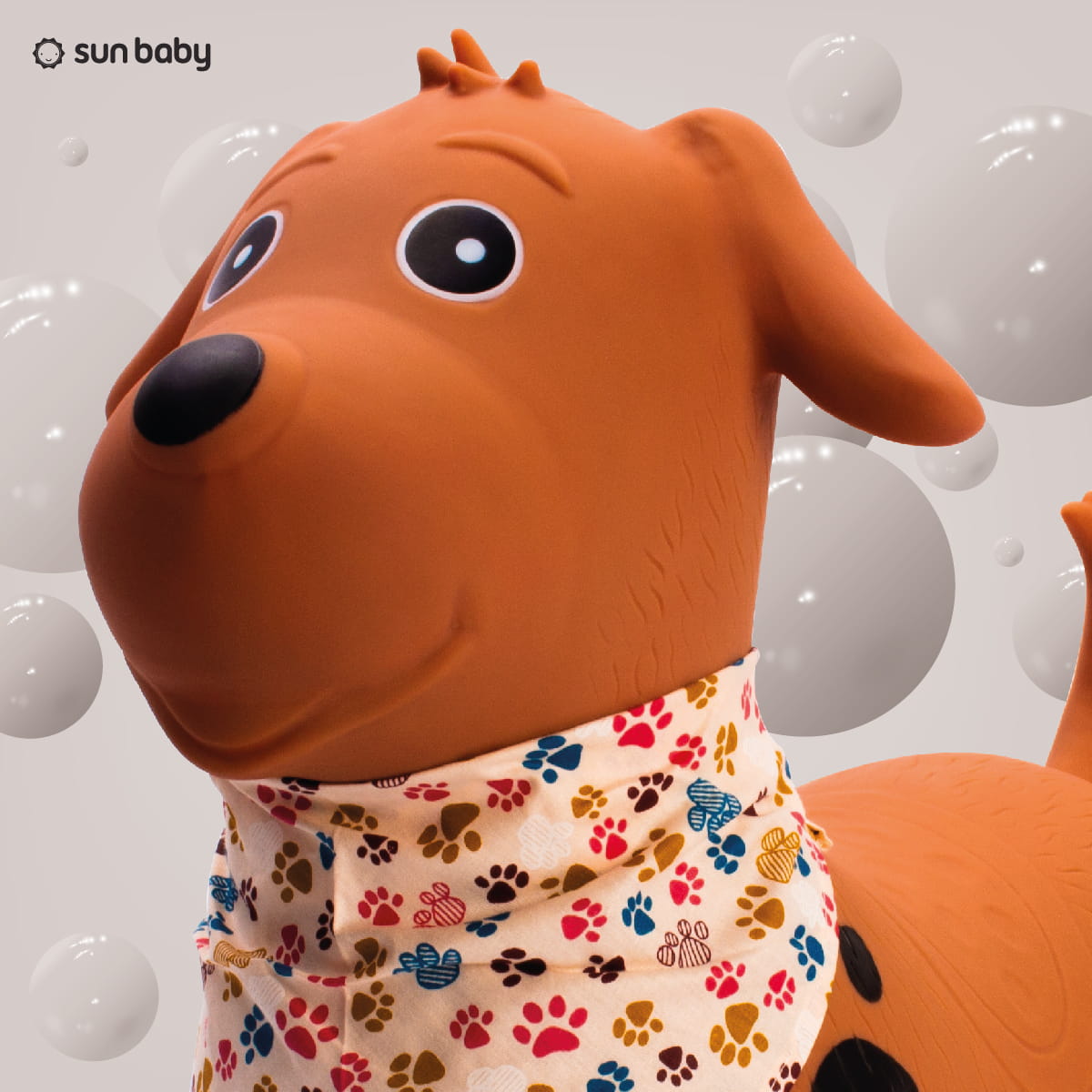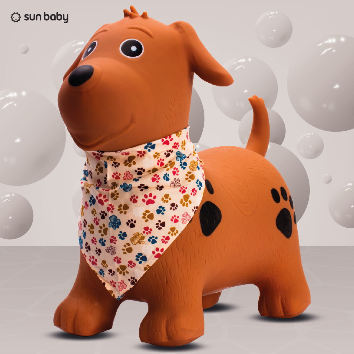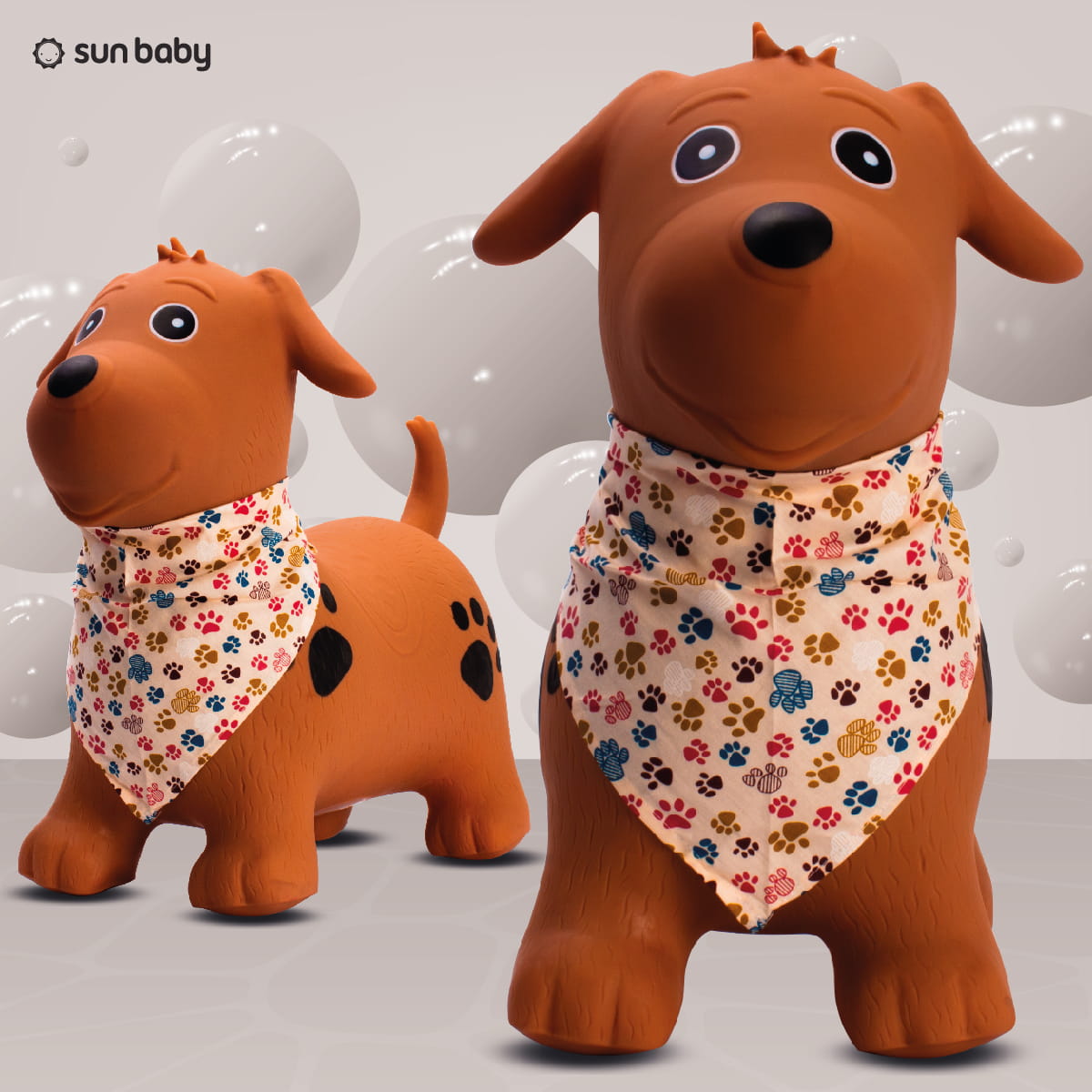Sun Baby Skoczek dla dzieci Piesek brązowy z bandaną i pompką – zabawka do skakania