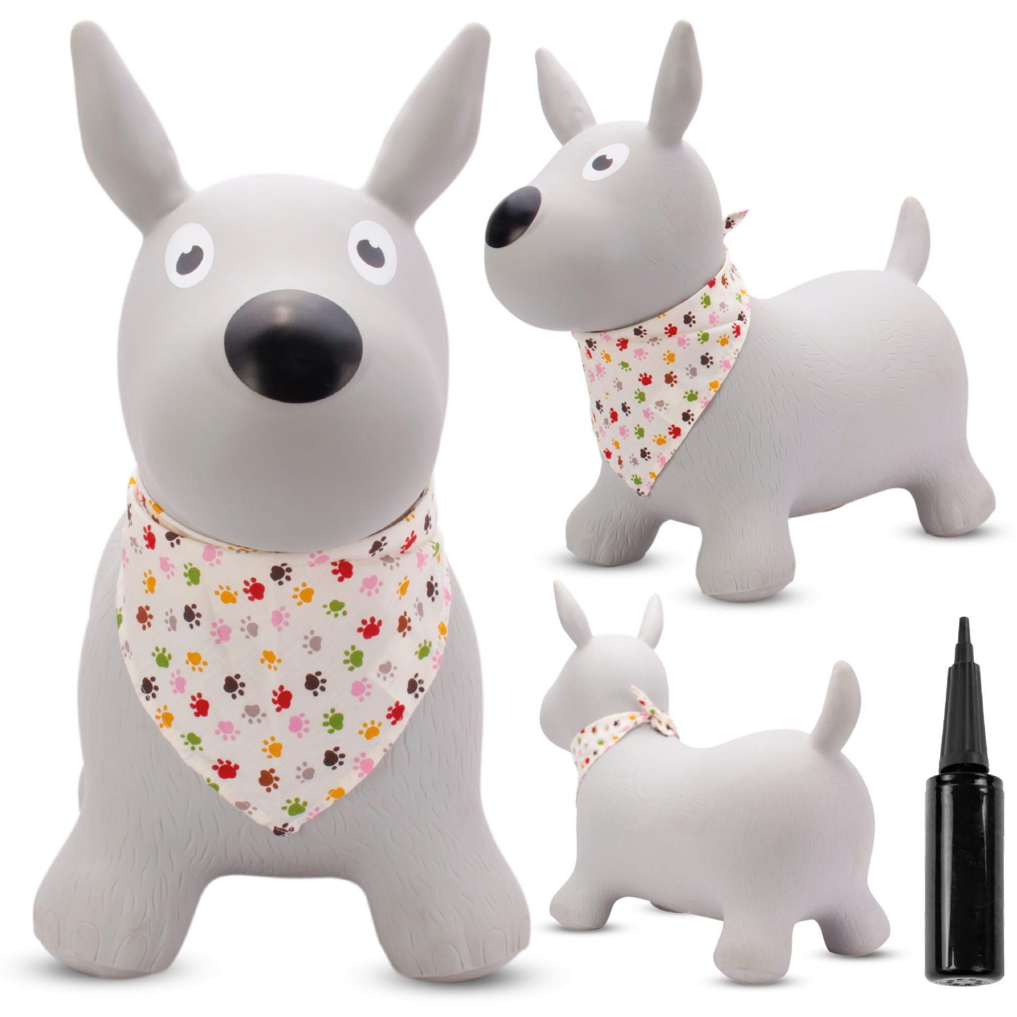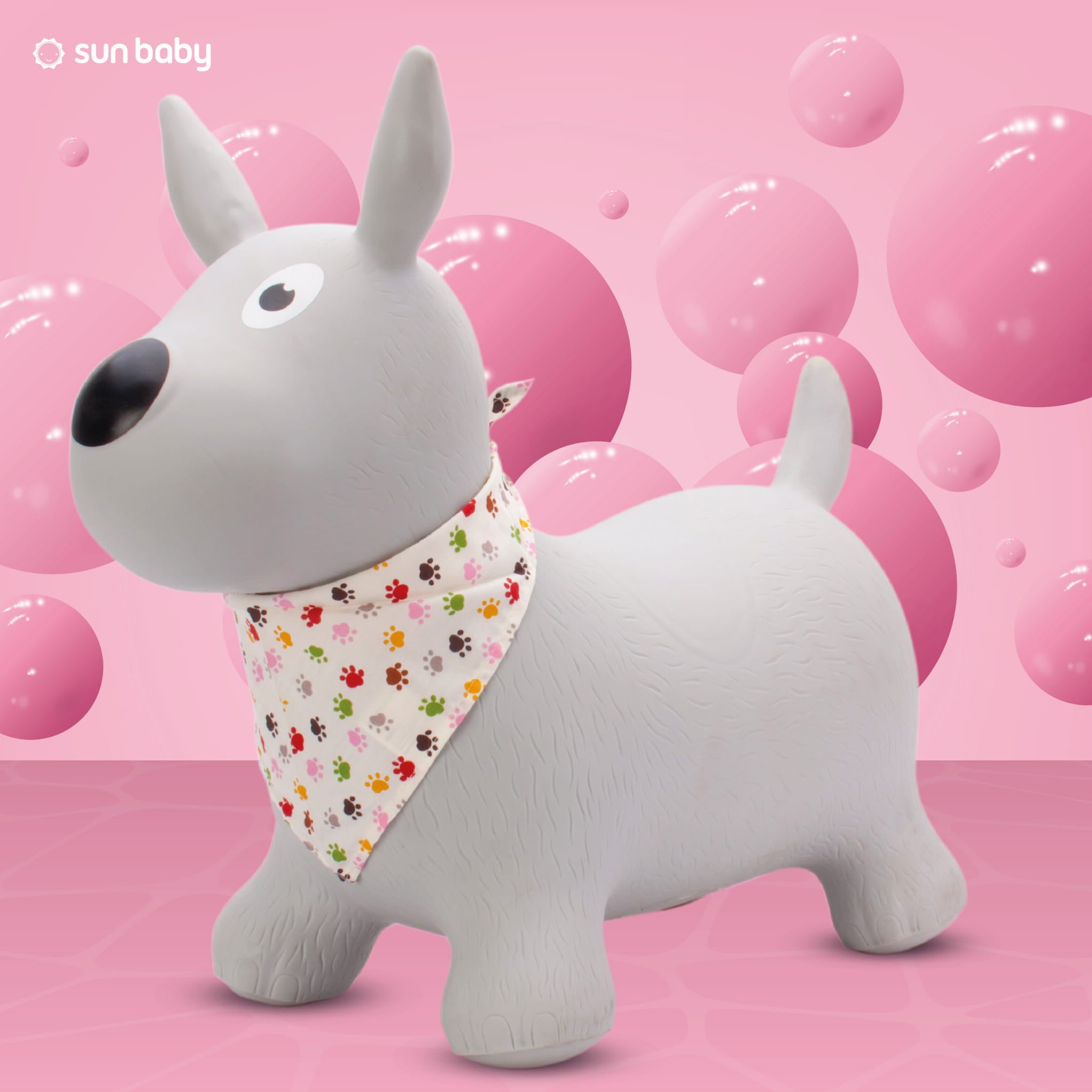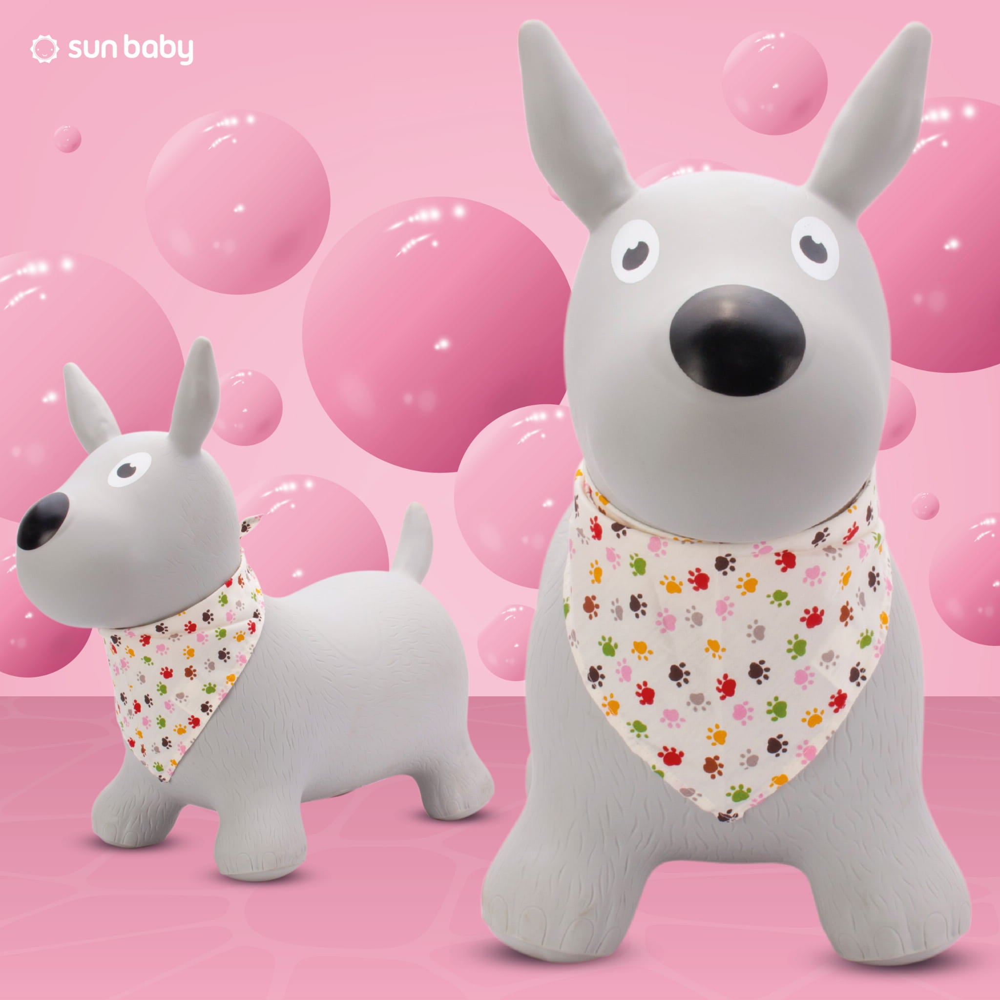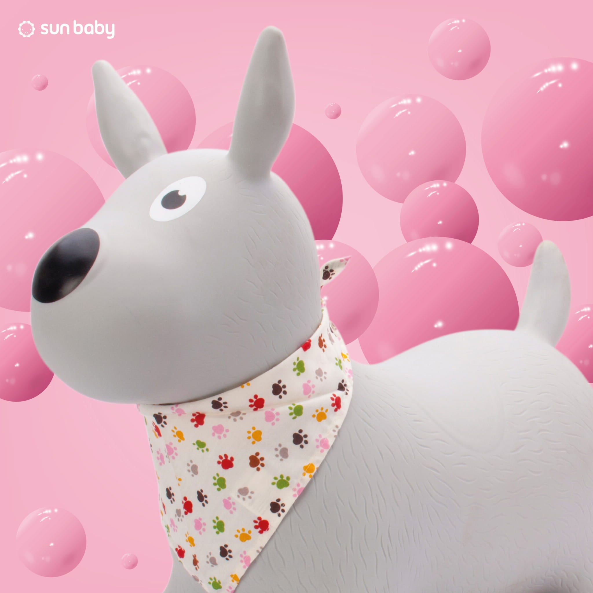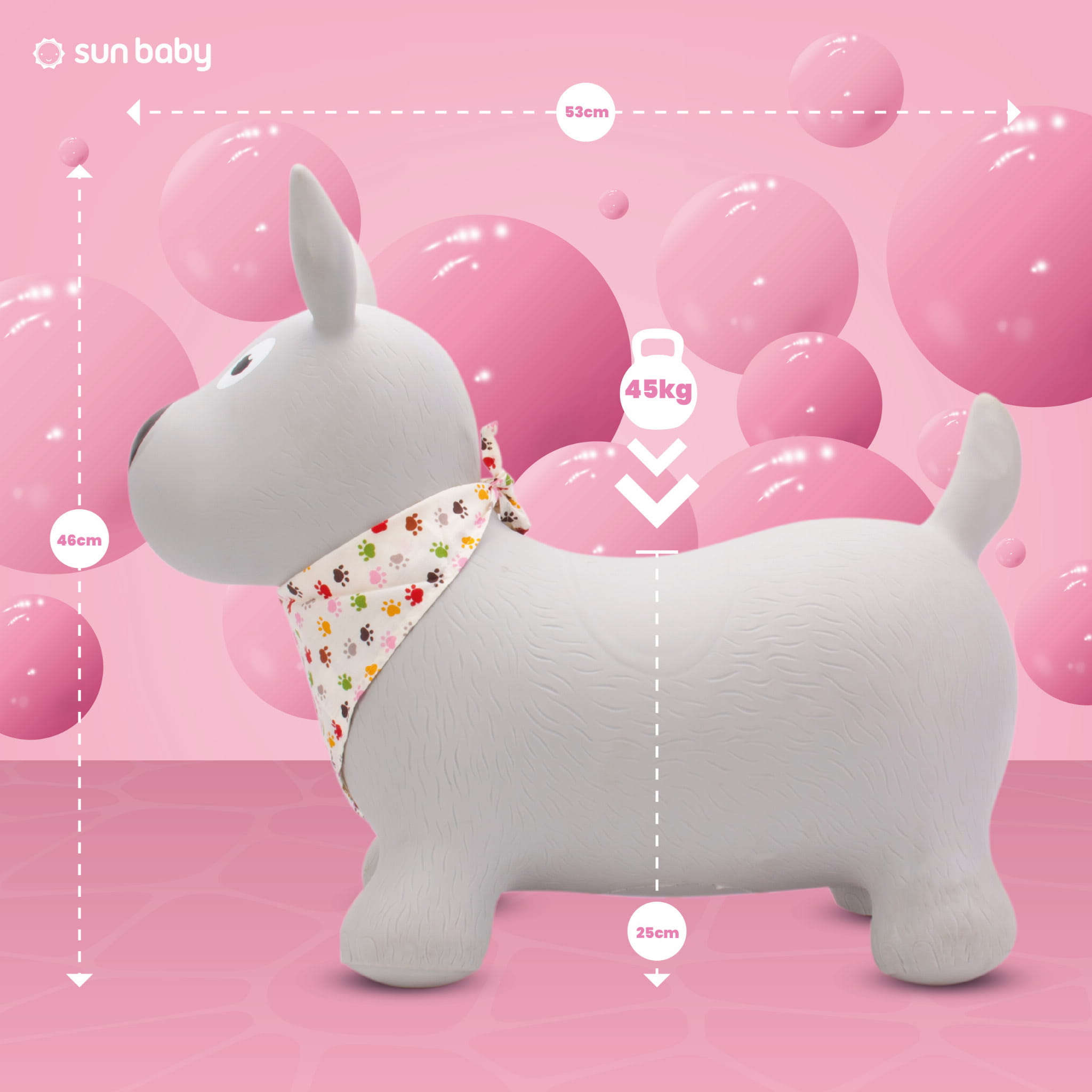 Sun Baby Skoczek dla dzieci Piesio szary z bandaną i pompką – zabawka do skakania