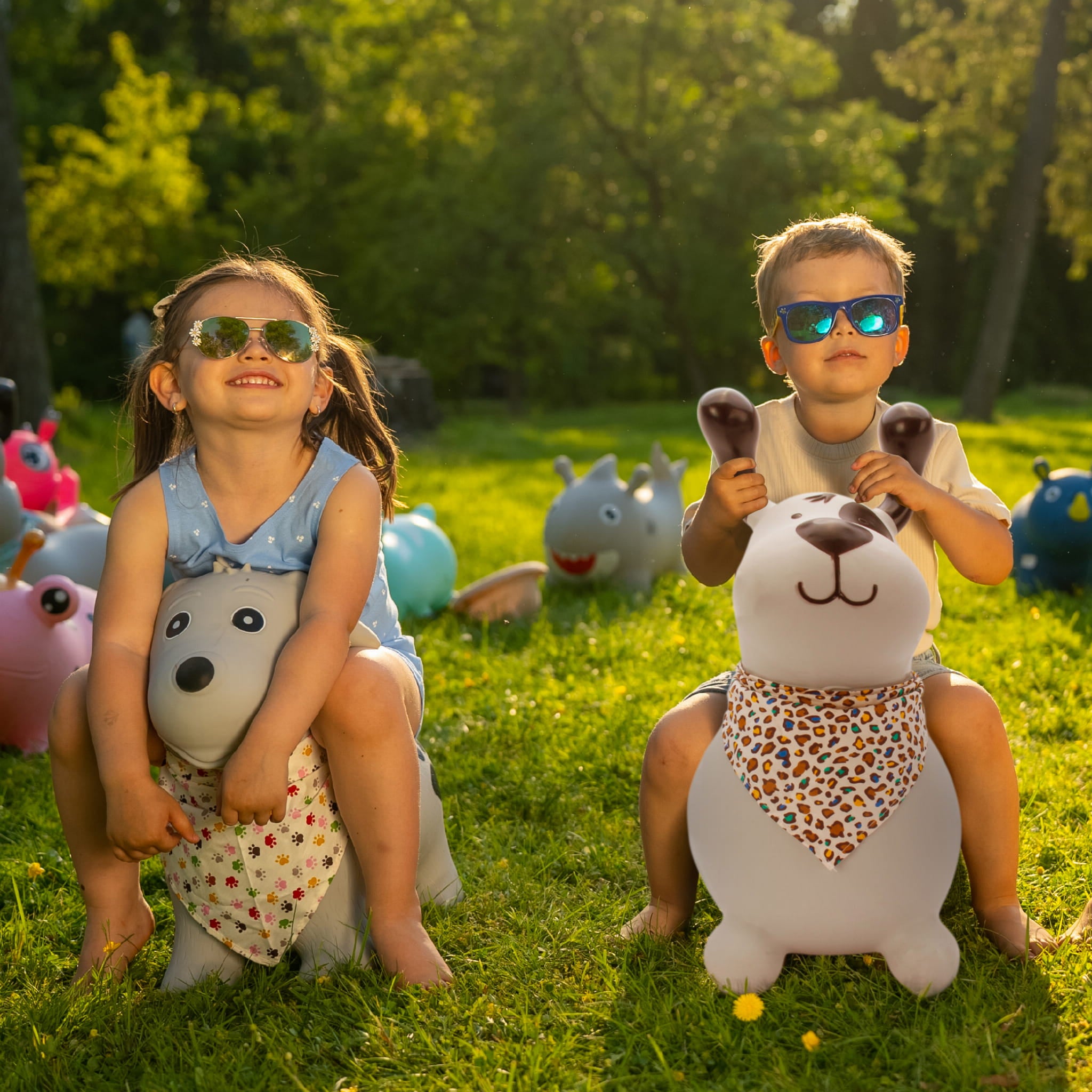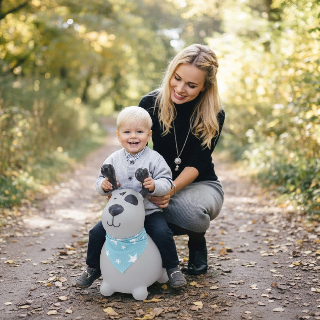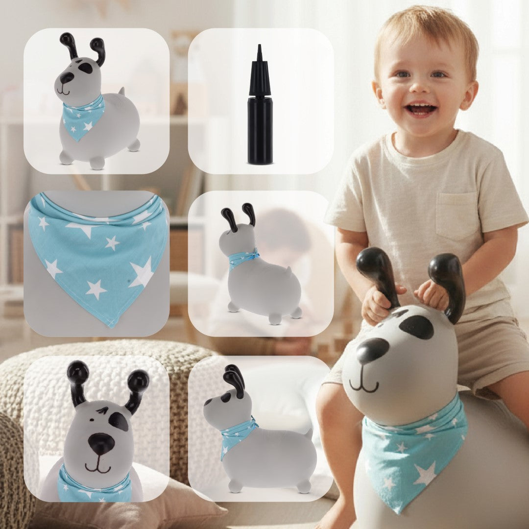 Sun Baby Skoczek dla dzieci Reksio szary z bandaną i pompką – zabawka do skakania