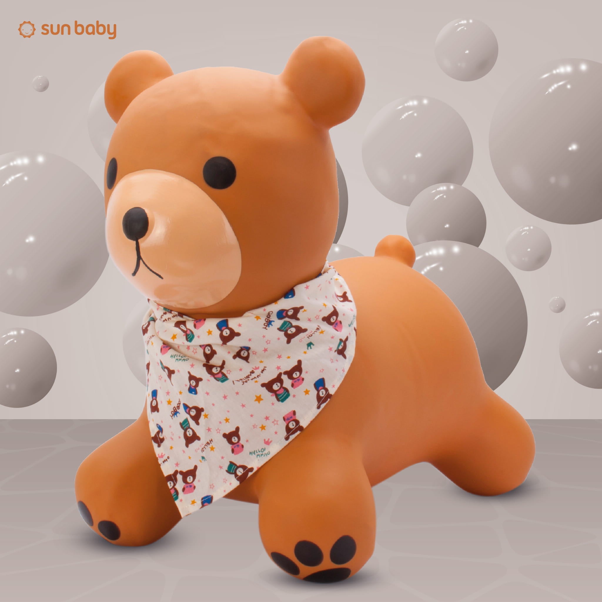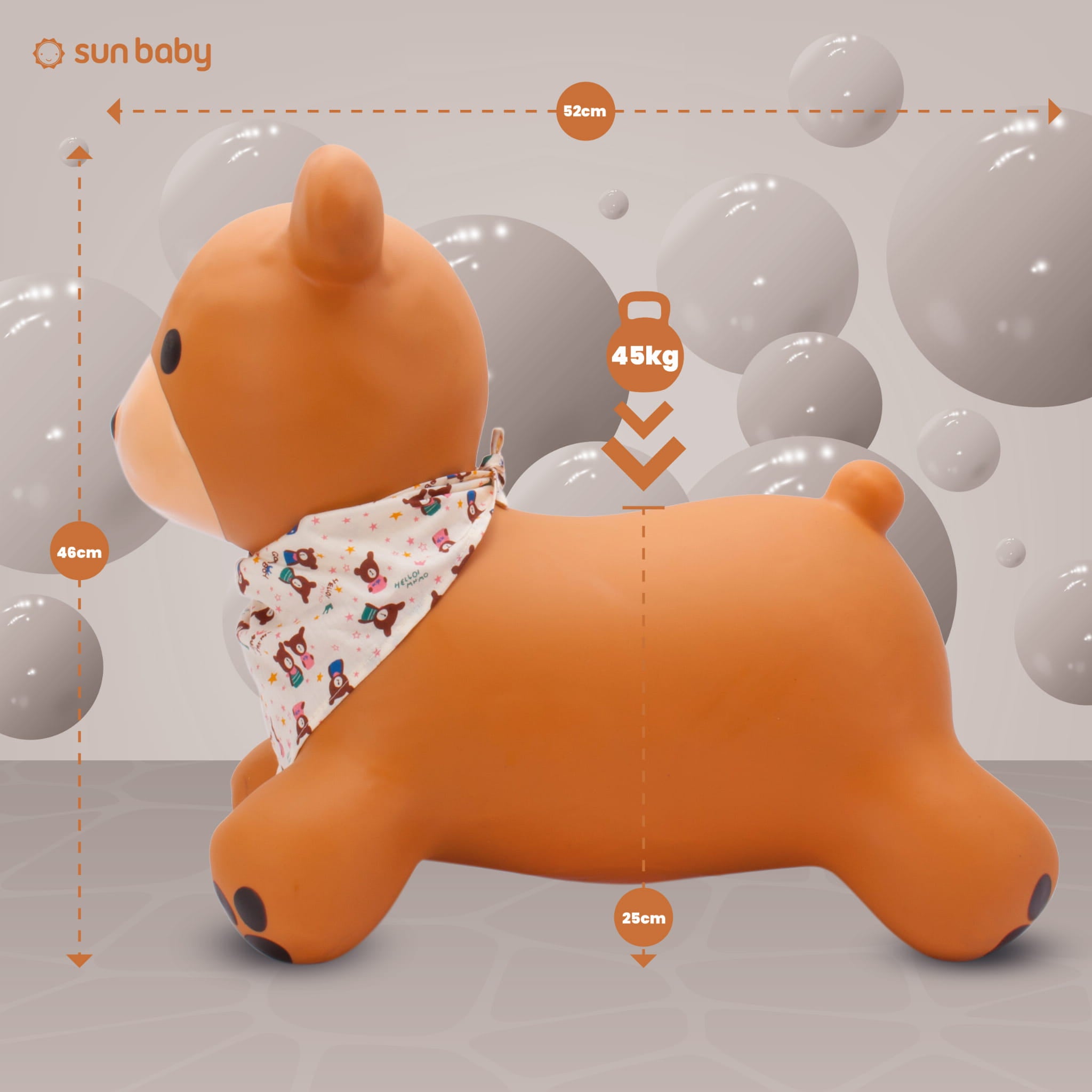 Skoczek dla dzieci Teddy brązowy z bandaną – do skakania z pompką