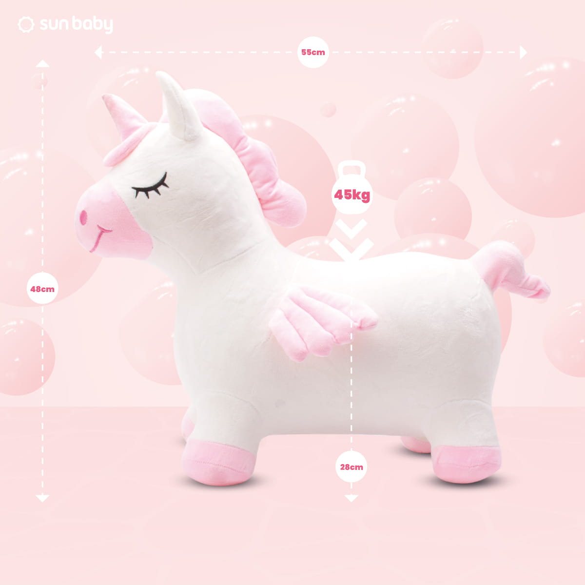 Skoczek pluszowy dla dzieci Jednorożec ze skrzydełkami biało-różowy – do skakania z pompką