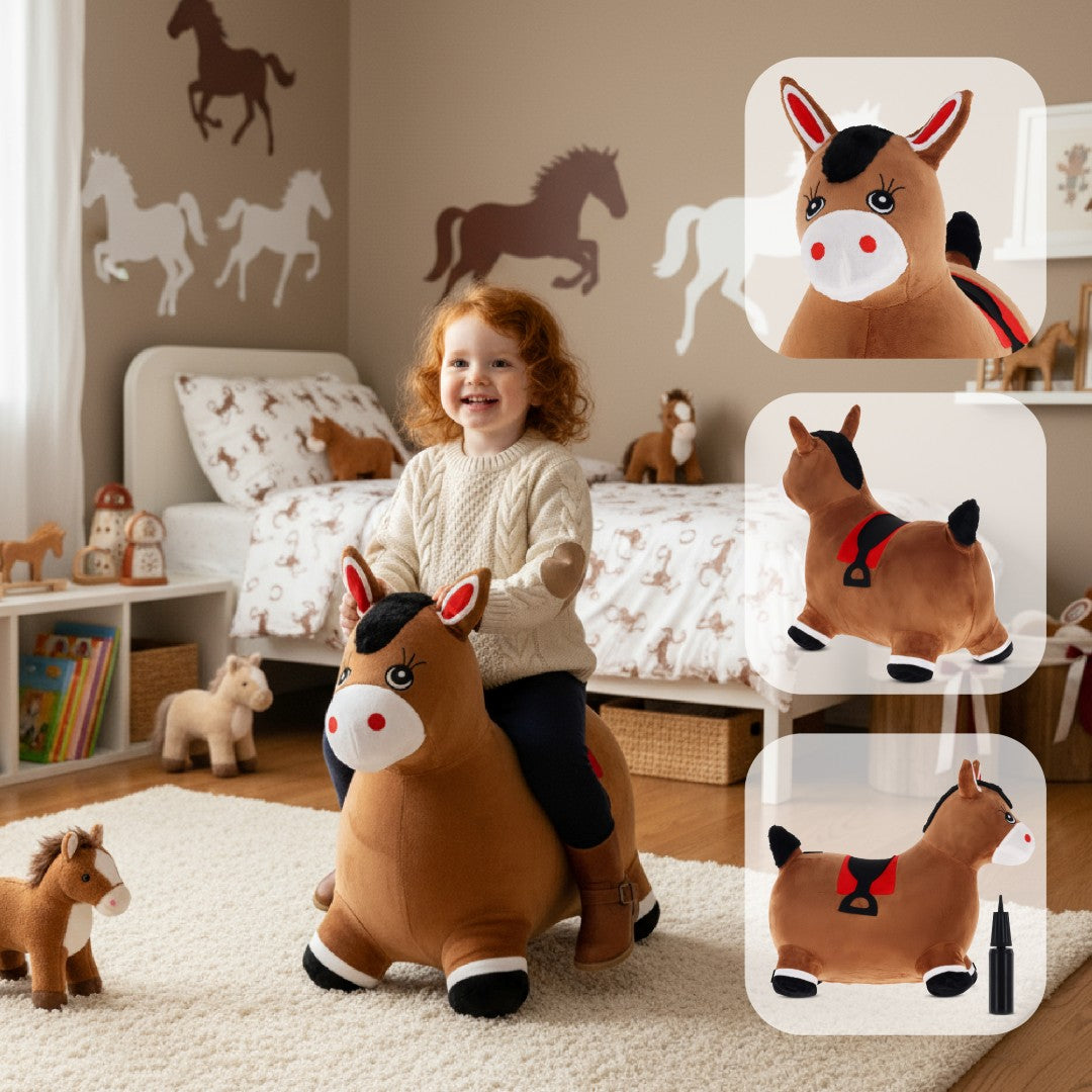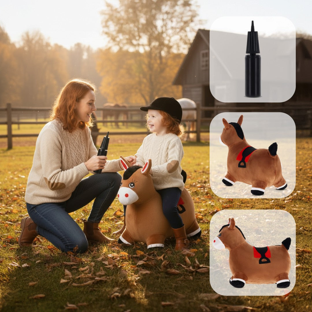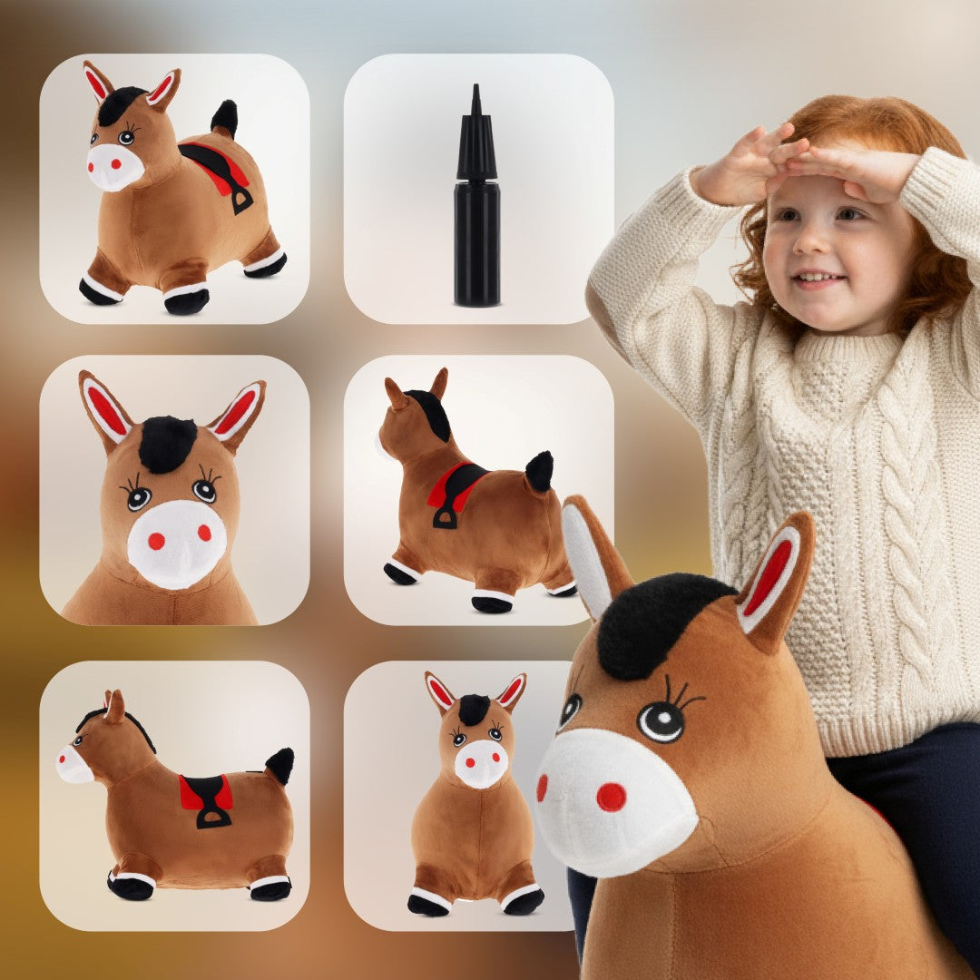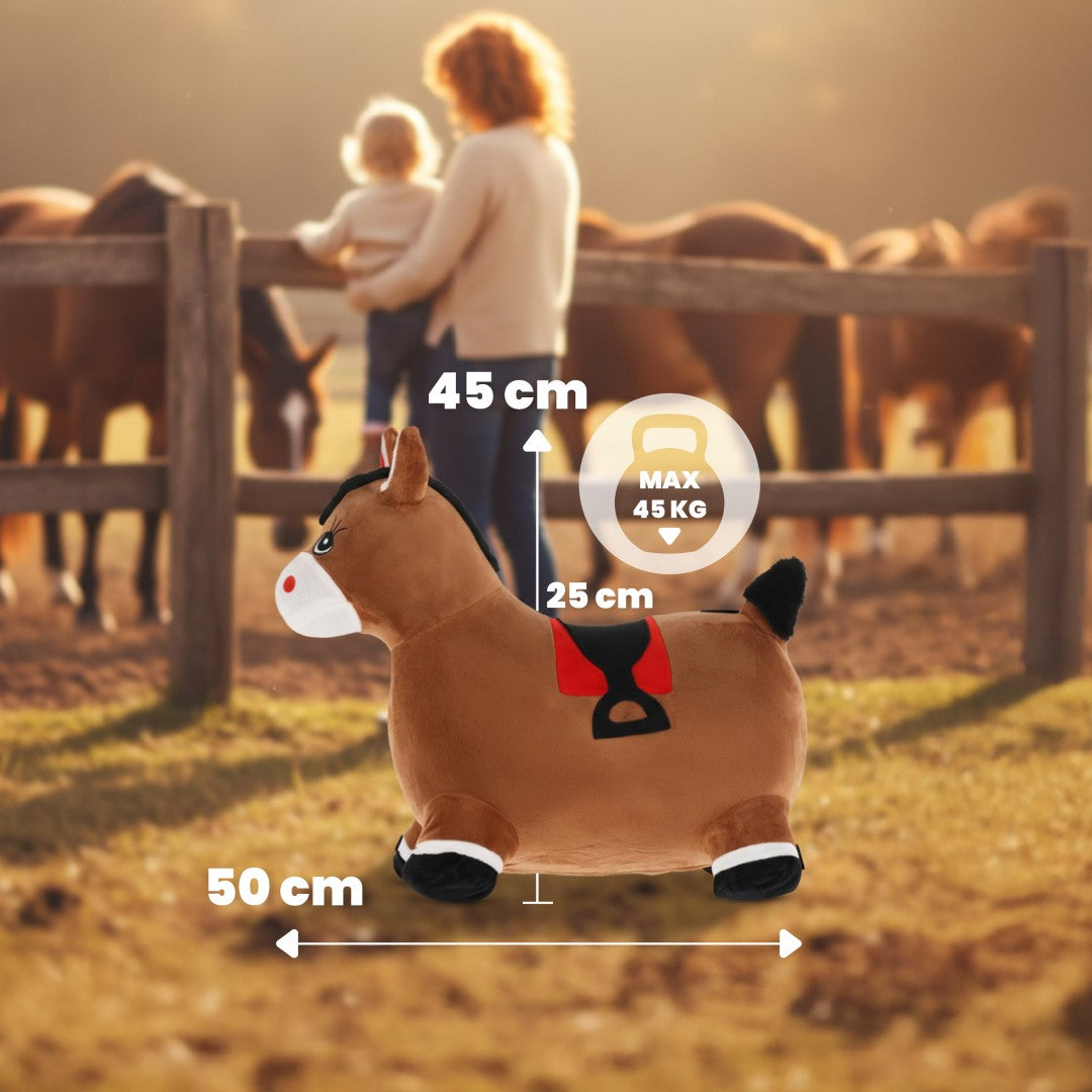 Skoczek pluszowy dla dzieci Konik brązowy – do skakania z pompką