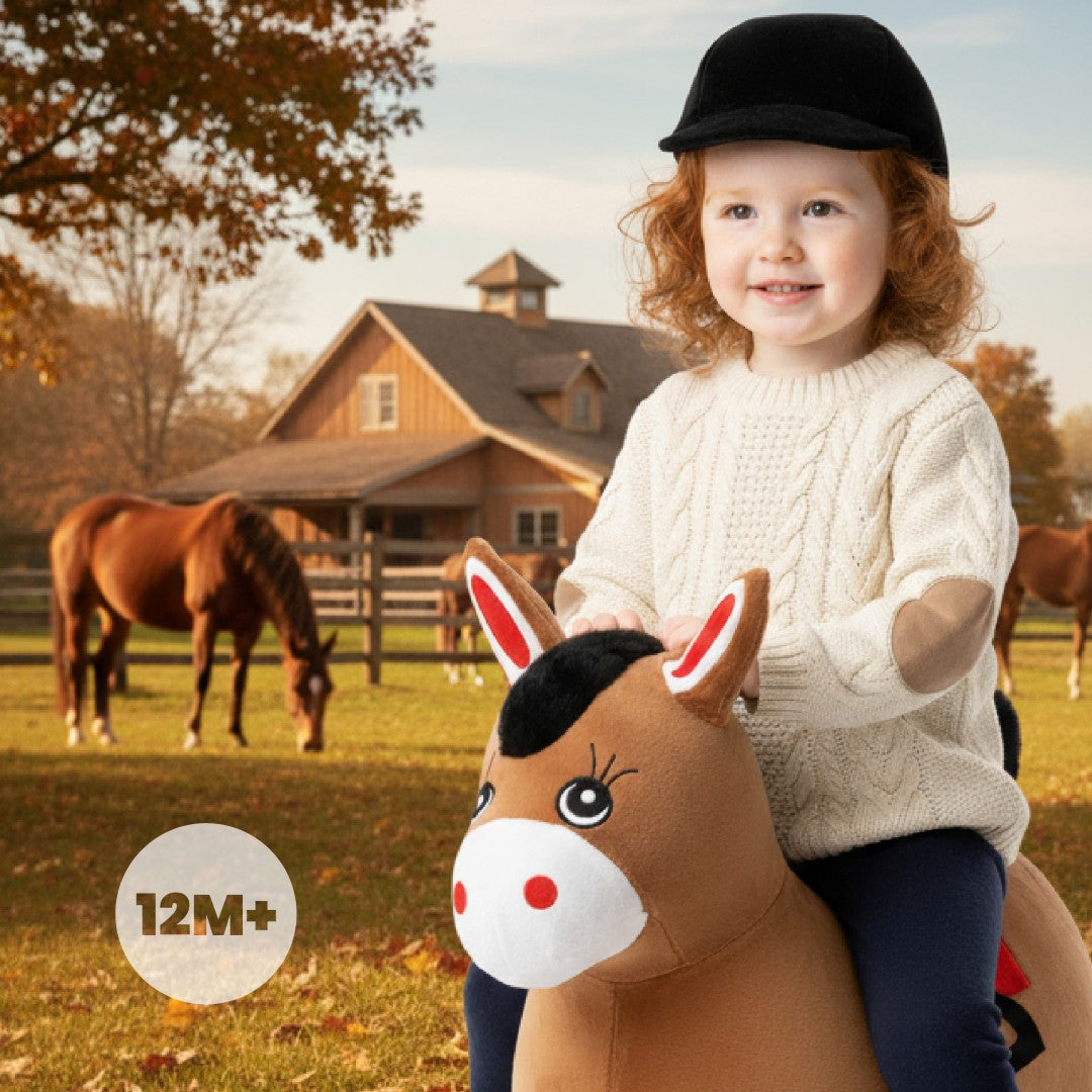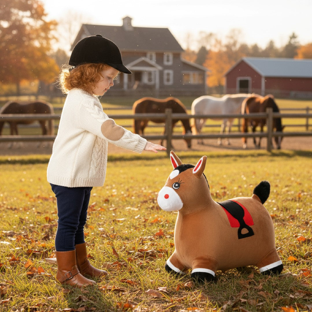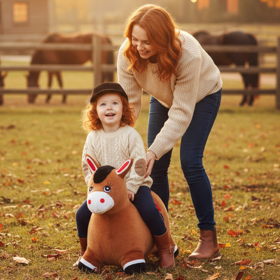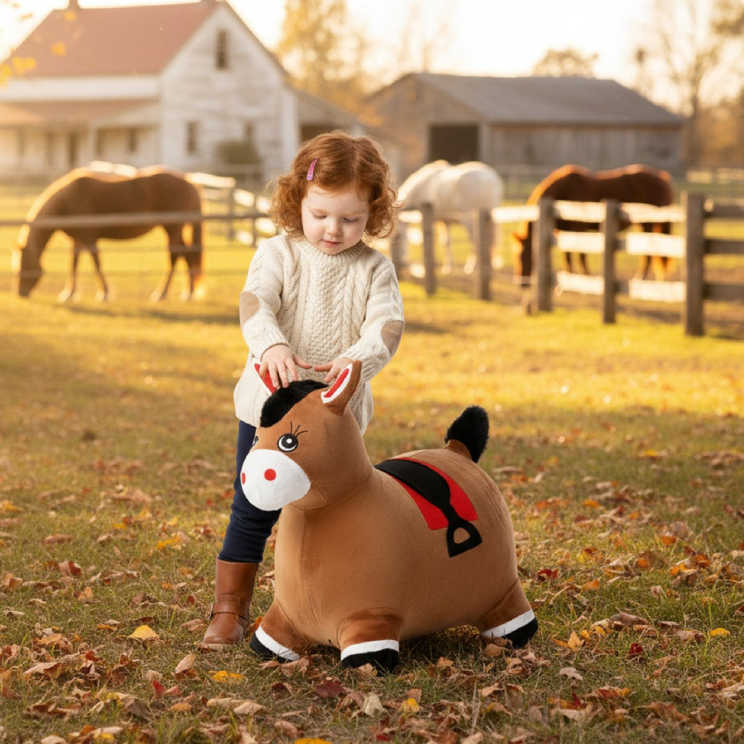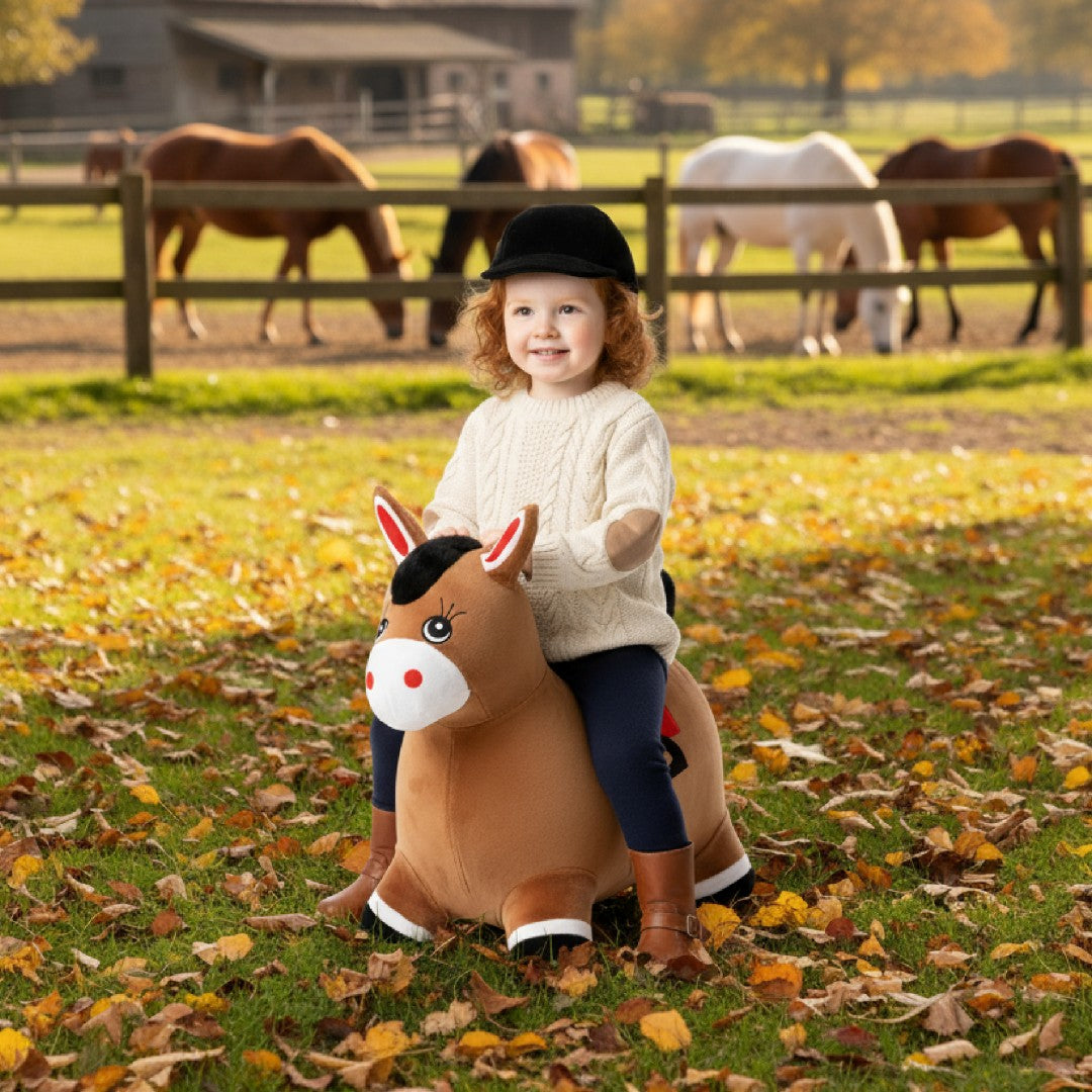 Skoczek pluszowy dla dzieci Konik brązowy – do skakania z pompką