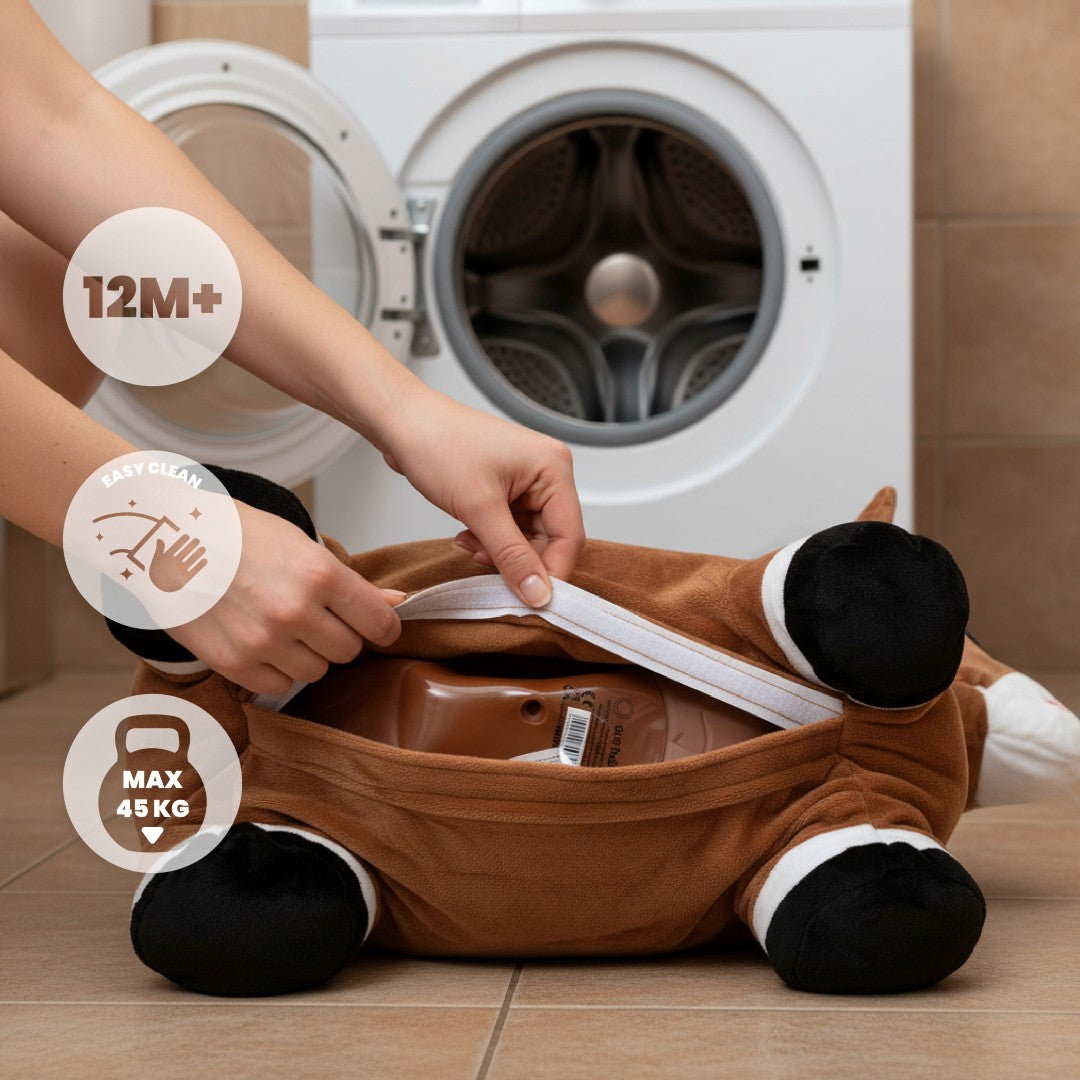 Pokrycie z miękkiego materiału można łatwo zdjąć i wyprać, co ułatwia utrzymanie zabawki w czystości.